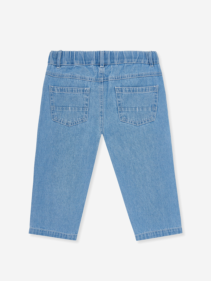 Детские джинсовые брюки из натурального хлопка с мягкой резинкой и регулируемым шнурком на поясе. Обеспечивают комфорт при движении, не натирают и подходят для повседневной носки в любое время года.