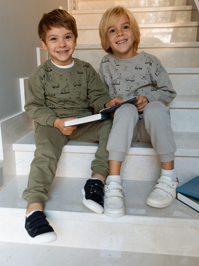 Современный костюм базовых цветов с уникальным принтом, вдохновленным индустрией добычи полезных ископаемых, создан для активных мальчиков, интересующихся техникой и технологиями. Модель выполнена из органического хлопка премиального качества, обеспечивающего максимальный комфорт во время подвижных игр.