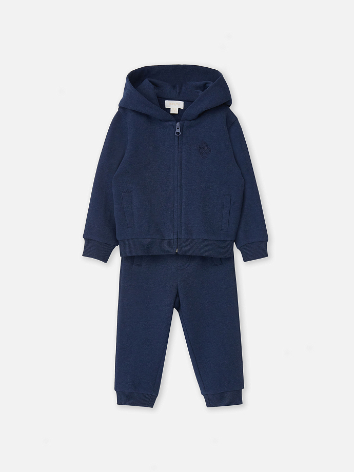 Универсальный костюм для малышей — тёплая толстовка на молнии с капюшоном и удобные брюки с эластичным поясом. Изготовлен из мягкого хлопка, не сковывает движений и отлично сохраняет тепло. Идеален для прогулок, активных игр и комфортного повседневного ношения в прохладное время года.