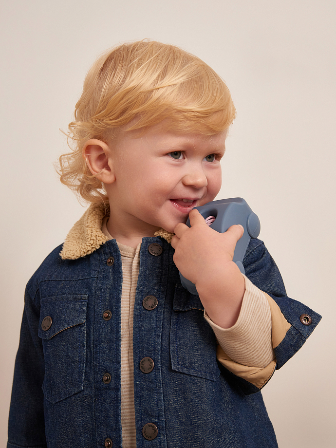 Плотный деним из 100 % хлопка защищает от ветра и устойчив к истиранию, а внутренняя хлопковая подкладка «дышит» и удерживает комфортное тепло. Мягкий искусственный эко- ширлинг на отложном воротнике дополнительно согревает шею и придаёт модели объёмный акцент. Фронтальная застёжка на металлических кнопках упрощает переодевание, два нагрудных кармана на клапанах и два боковых кармана сохраняют мелочи под рукой. Прямой крой не сковывает движений, а манжеты на кнопках позволяют регулировать объём рукава под свитшот или худи. Куртка рассчитана на демисезон и прохладные летние вечера — универсальный вариант для детского сада, прогулок и поездок, сохраняющий форму и насыщенность цвета даже после частых стирок.